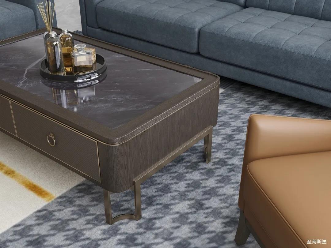 霧霾藍低飽和的沙發(fā),沿用了蒙德里安的幾何設計美學,兼容了雅致與時尚的風范,在平靜的生活中表現(xiàn)出獨特的藝術骨感,滿足我們對精致生活的精神追求。