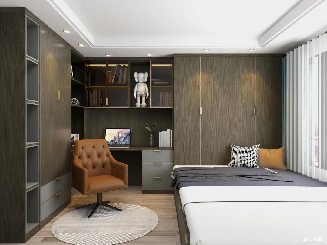 別具一格的定制,都是通過高級材質(zhì)與色彩來展現(xiàn)極簡摩登生活。一字型衣柜+書桌設計,打造了“簡而不減”的別致空間。深邃的灰色系定制為空間注入現(xiàn)代都市風情,在品位簡約中彰顯奢華氣質(zhì)!