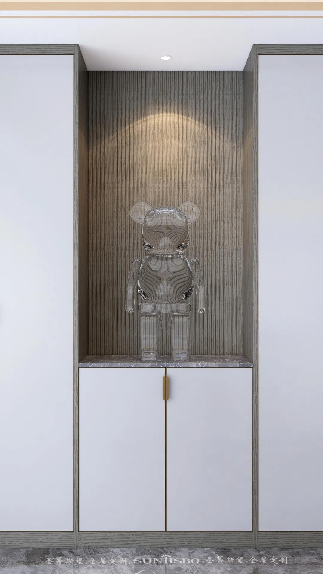 ▲英倫仿古灰的定制柜體在復(fù)古中給空間增添了一份高貴感。