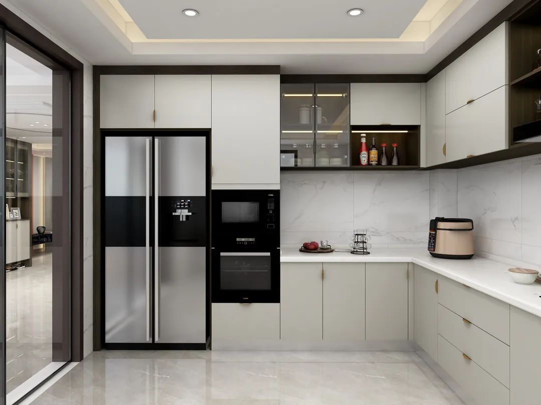 廚房以自然簡約的高級色調塑造出時尚的效果,