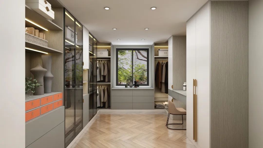 獨立衣帽間色調柔和,造型簡約